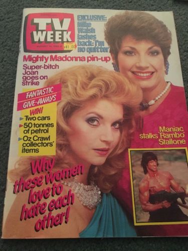 TV Week August 10 1985 Stallone, Joan Collins, Boy George, Michael J Fox