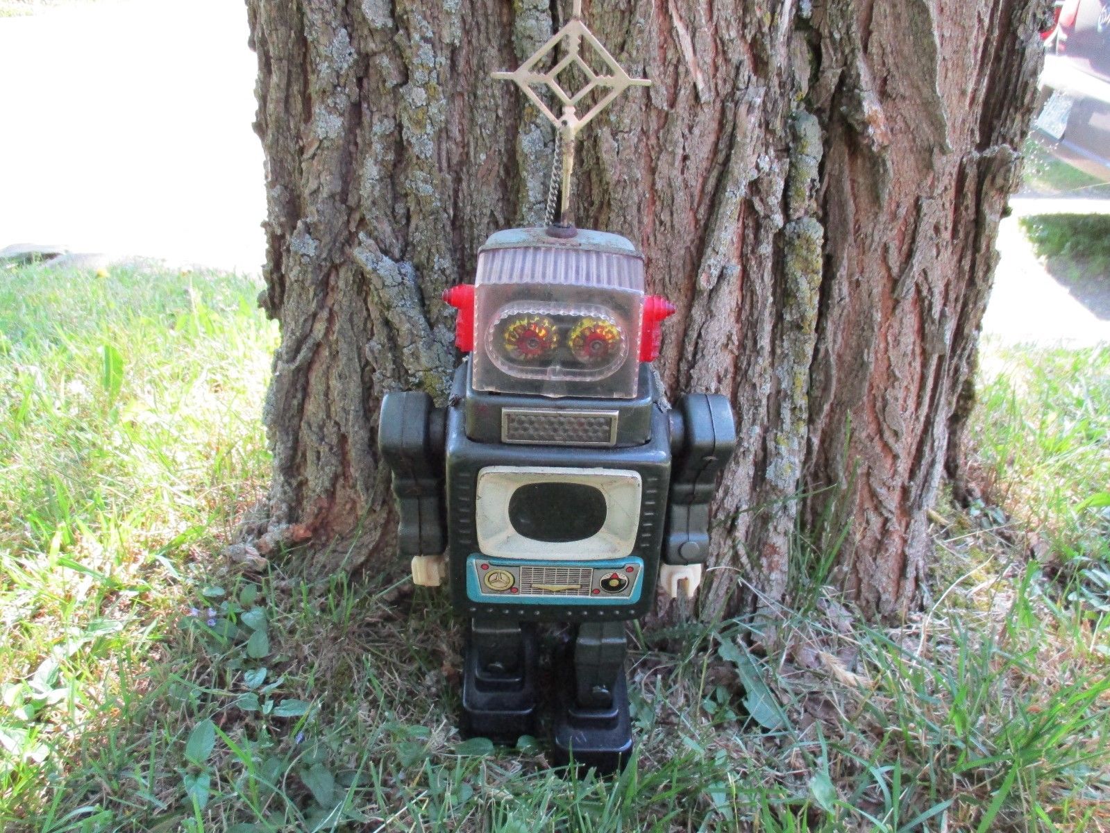 Title (ebay affiliate link): ORIGINAL VINTAGE 60'S BATTERY OPERATED TIN TOY ROBOT TV SCREEN AS IS CONDITION