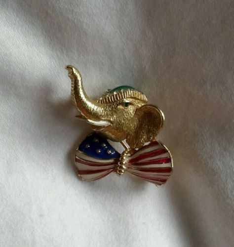 Title (ebay affiliate link): Vintage patriotic ELEPHANT PIN with flag bowtie, RNC memorabilia