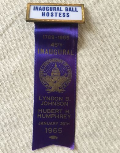 Title (ebay affiliate link): Political Badge Ribbon Seal Gold Metal 1965 Inaugural BallHostess President LBJ