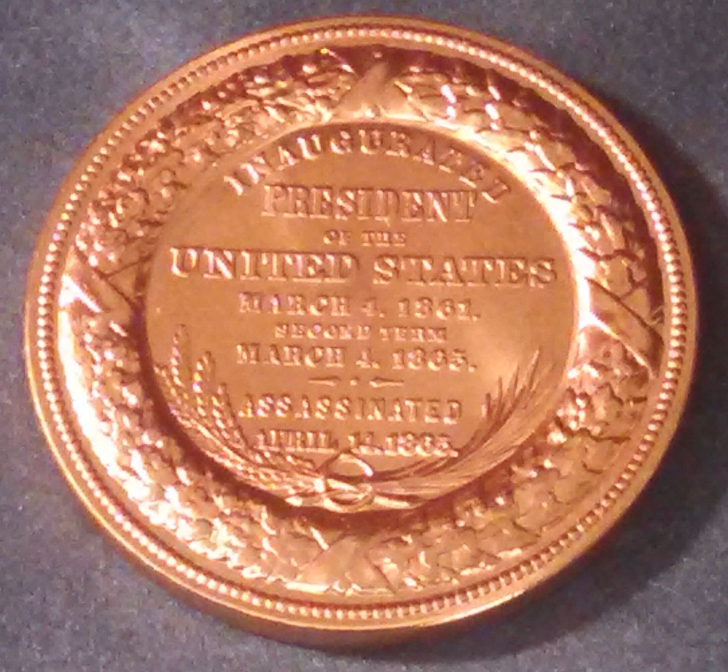 Title (ebay affiliate link): Abraham Lincoln Commemorative Inaugeration / Assination Copper Medal/Token