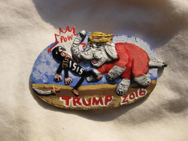 Title (ebay affiliate link): Donald Trump "Elephant vs ISIS" 2016 Presidential Campaign Novelty Pin