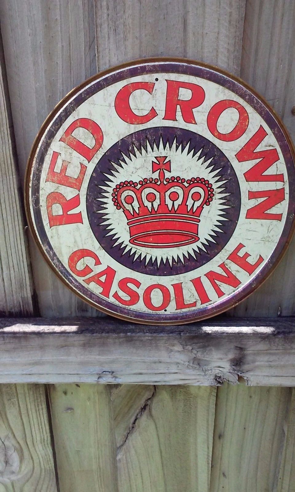 Title (ebay affiliate link): RED CROWN GASOLINE METAL SIGN VINTAGE LOOKING 12 BY 12 INCHES GAS SHOP MAN CAVE