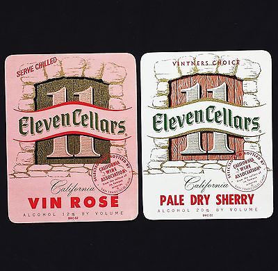 Eleven Cellars California Pale Dry Sherry Vin Rose Vintage Old Label Set CA USA