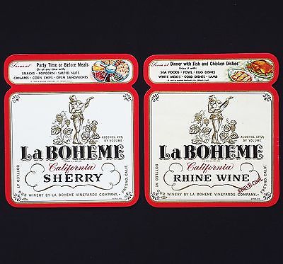 La Boheme California Rhine Wine Sherry Vintage Old Label Set Fresno California