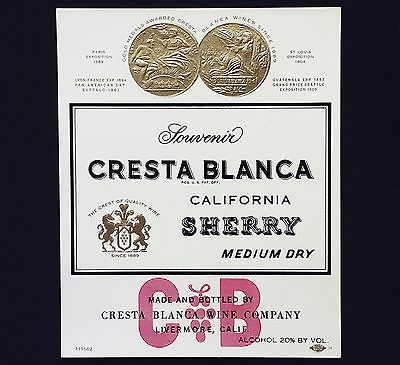 Title (ebay affiliate link): Souvenir Cresta Blanca California Sherry Vintage Old Label Livermore CA USA