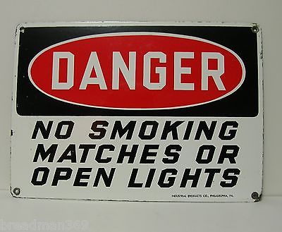 Vintage Porcelain Enamel Steel DANGER No Smoking Sign + RADIOACTIVE STICKER