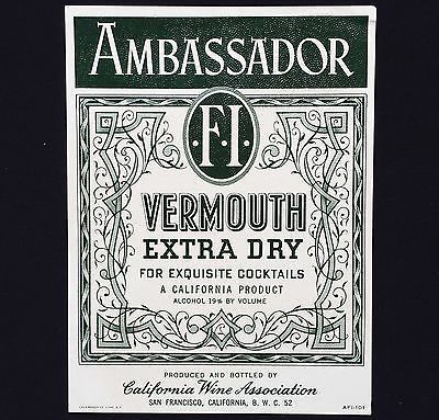 Title (ebay affiliate link): Ambassador FI Vermouth Extra Dry Vintage Old Label San Francisco California CA