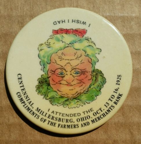 Title (ebay affiliate link): Millersburg,Ohio Centennial Celebration,Oct.1925,Souvenir Pocket Mirror