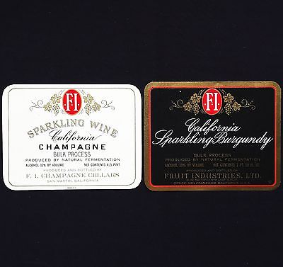 F.I. FI California Sparkling Burgundy Wine Champagne Vintage Old Label CA USA