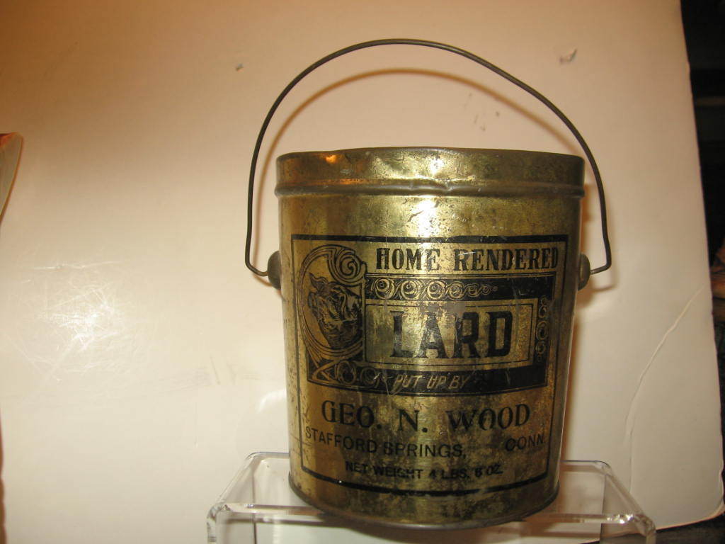 Title (ebay affiliate link): RARE STAFFORD SPRINGS CT GEO N WOOD HOME RENDERED LARD ADVERTISING TIN