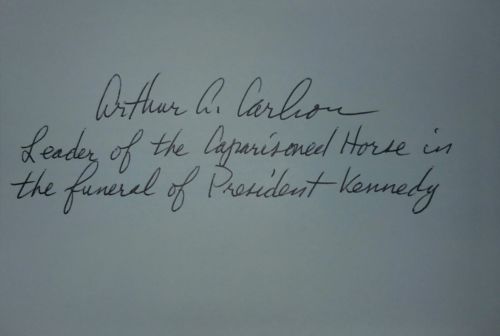 Title (ebay affiliate link): ARTHUR CARLSON SIGNED INSCRIBED CARD JFK FUNERAL LED HORSE KENNEDY ASSASSINATION
