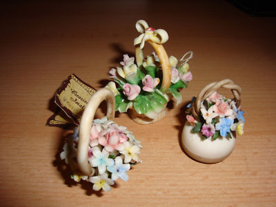 Title (ebay affiliate link): 3 OLD VINTAGE CAPODIMONTE MINI CHINA FLOWERS IN BASKETS