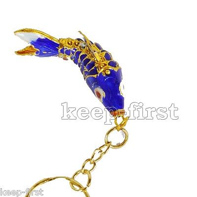Title (ebay affiliate link): Vintage Cloisonne Articulated 12K Gold GF Fish keychain & Charm Enameled Blue