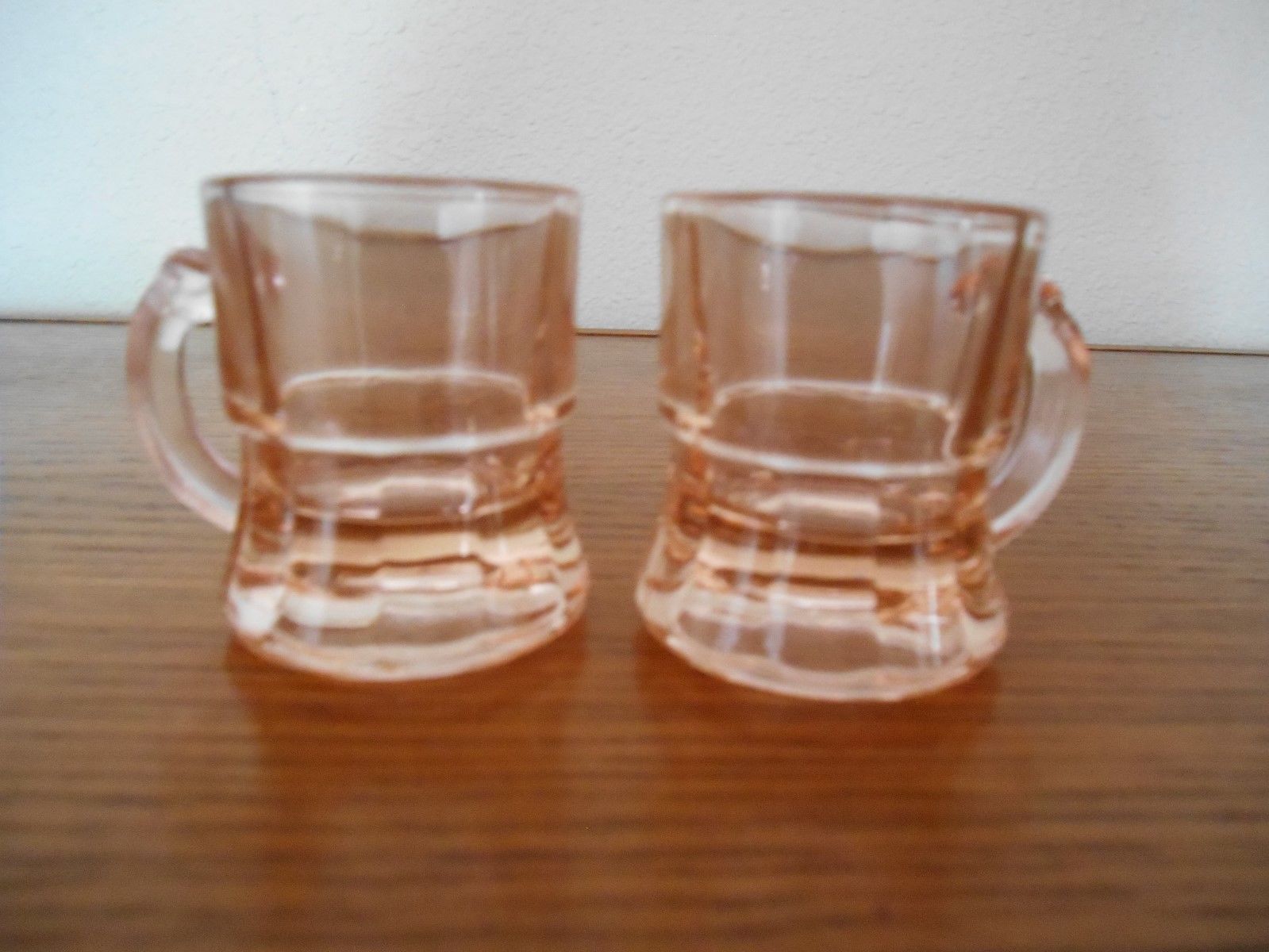 Title (ebay affiliate link): Vintage Pink Depression Glass Beer Mug Stein Shot Glasses - set of 2