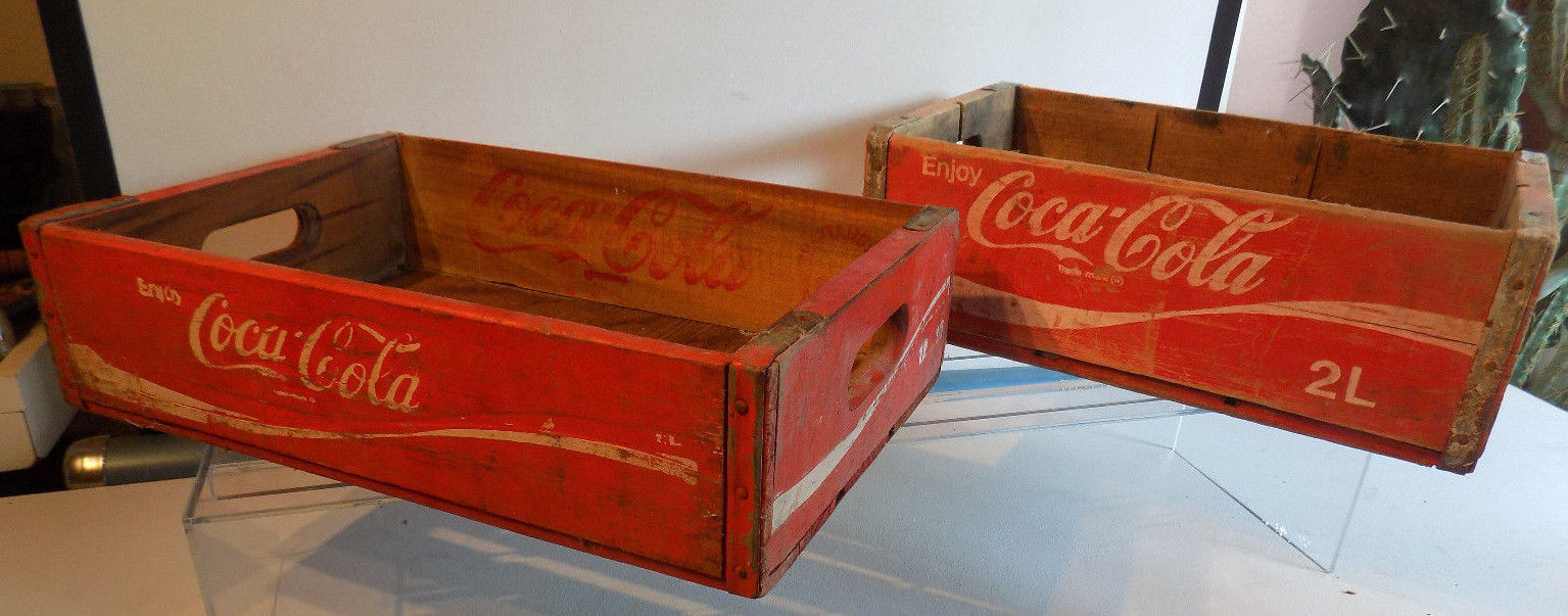 Title (ebay affiliate link): VINTAGE LOT 2 ENJOY COCA COLA COKE WOOD BOTTLE CARRIER CRATES 16OZ & 2 LITER