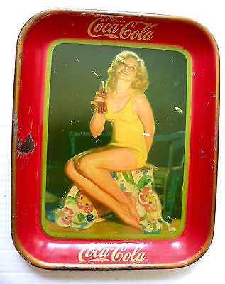 Title (ebay affiliate link): VINTAGE 1932 "DRINK COCA-COLA" GIRL IN YELLOW BATHING SUIT TRAY