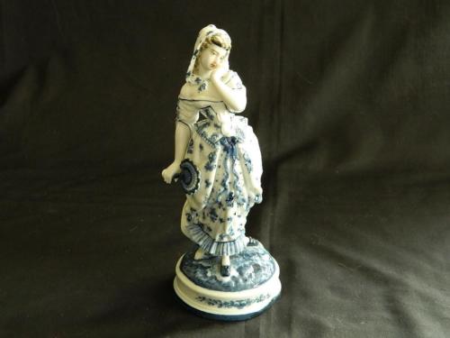 Vintage KPM Germany Porcelain Lady Figurine Blue - White 9"