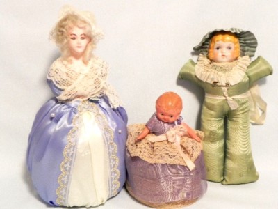 Three, Antique, Pin Cushion Dolls, Half Doll Plus -SALE