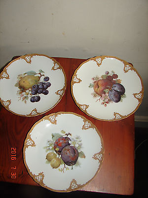 Set of 3 Antique Furstenberg Fruit Plates w/ Gold Scroll Edge Hand Decorated