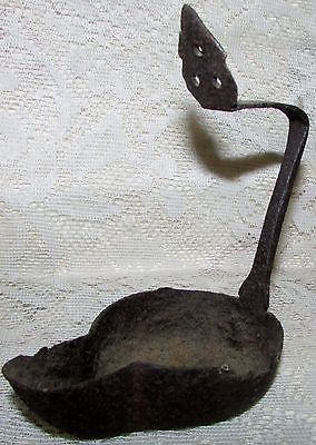 Primitive Wrought Iron Betty Lamp Hand Forged Early Antique Cruise Whale Oil
