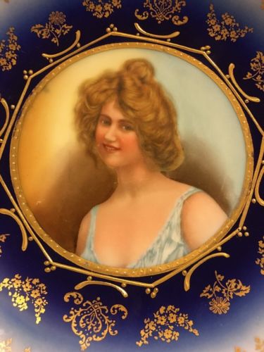 Gorgeous Antique Porcelain Portrait Plate Cobalt Gold Encrusted