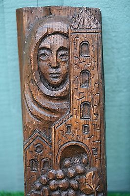 SUPERB ANTIQUE WOODEN OAK CARVING of VIRGIN MARY, CHURCH & OTHER of CHURCH ORIG