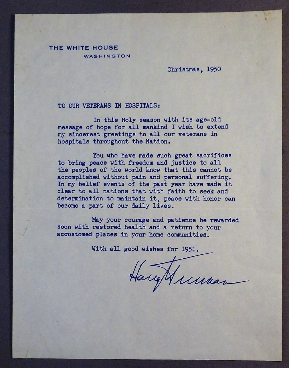 Title (ebay affiliate link): 1950 President Harry Truman Korean War Wounded Veteran Christmas Greetings
