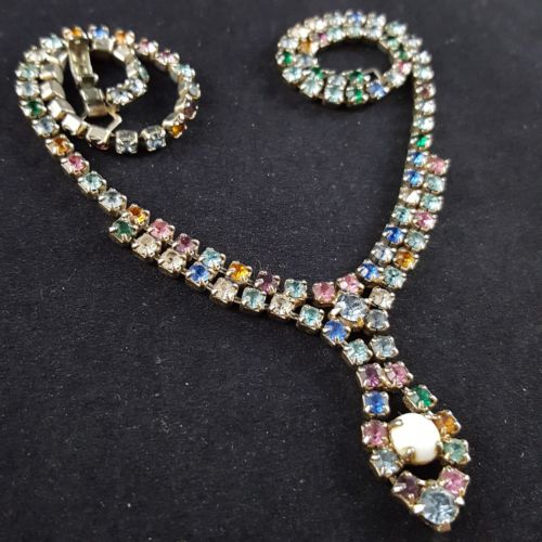 Title (ebay affiliate link): Vintage 14" Fruit Salad Rhinestone Necklace Crystal Milk Glass Pretty! H15