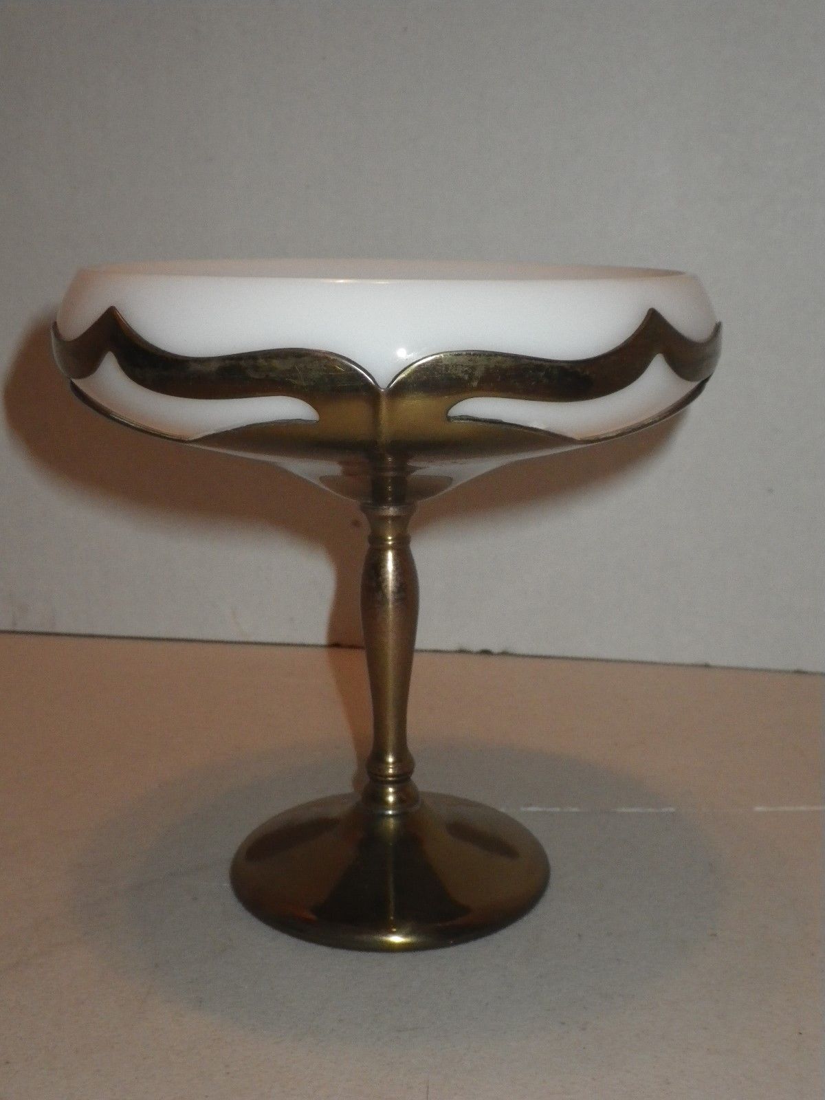 Title (ebay affiliate link): Vintage Art Deco Farber Bros Gold Plated Compote Bowl Pedestal White Milk Glass