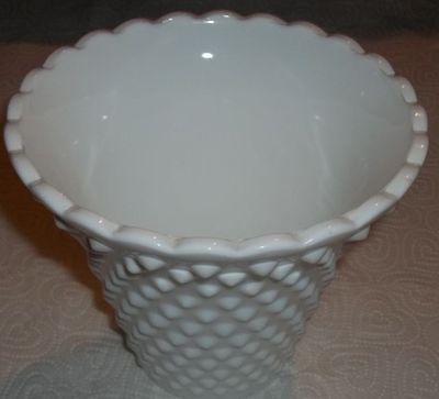 Title (ebay affiliate link): Very Pretty Older HobnailWhite Milk Glass Vase 5.75" Tall Scalloped Edge