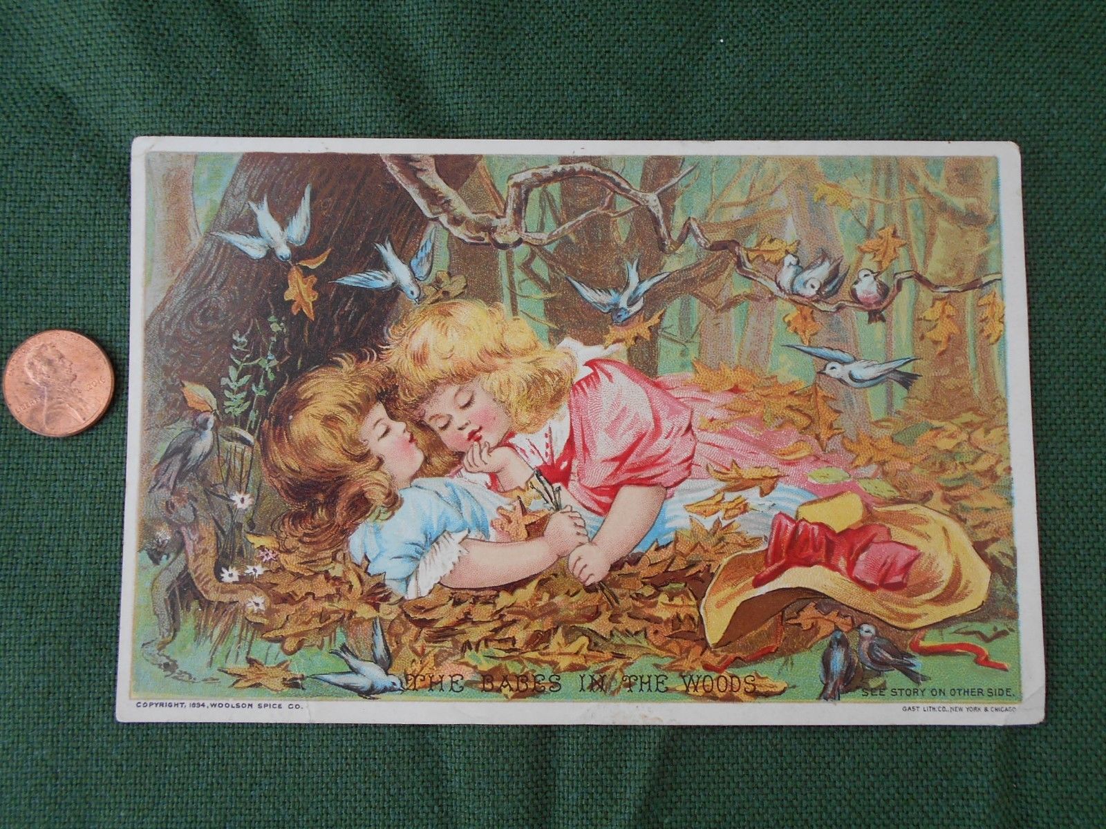 Title (ebay affiliate link): Antique Victorian Trade Ad Card Woolson Spice Lion Coffee Babes in Woods Toledo