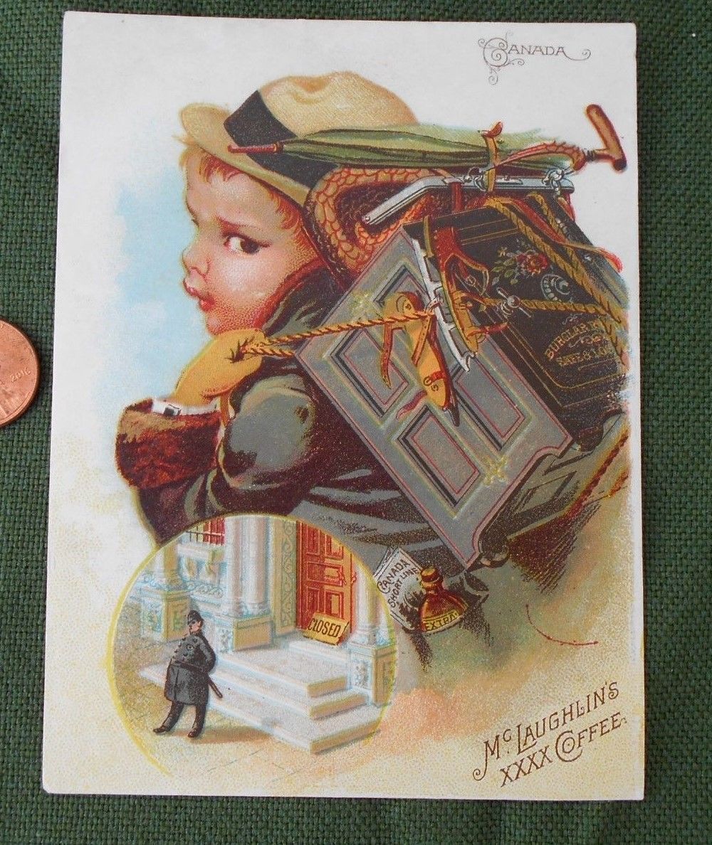 Title (ebay affiliate link): Antique Victorian Trade Ad Card McLaughlin's Coffee Boy Back Packing
