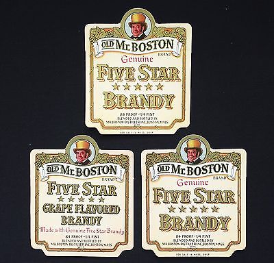 Old Mr. Boston Five Star Brandy Vintage Label Etiquette Set Massachusetts USA