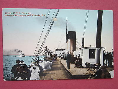 ON CPR STEAMER between VANCOUVER & VICTORIA,B.C vintage colour postcard c.1910's