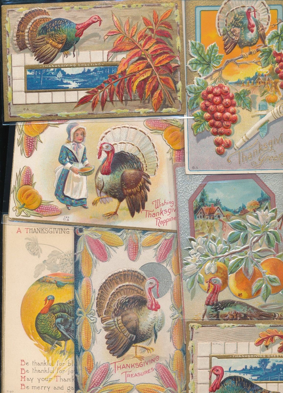 Lot of 7 ANTIQUE EARLY 1900s HOLIDAY Postcards * THANKSGIVING * -a529
