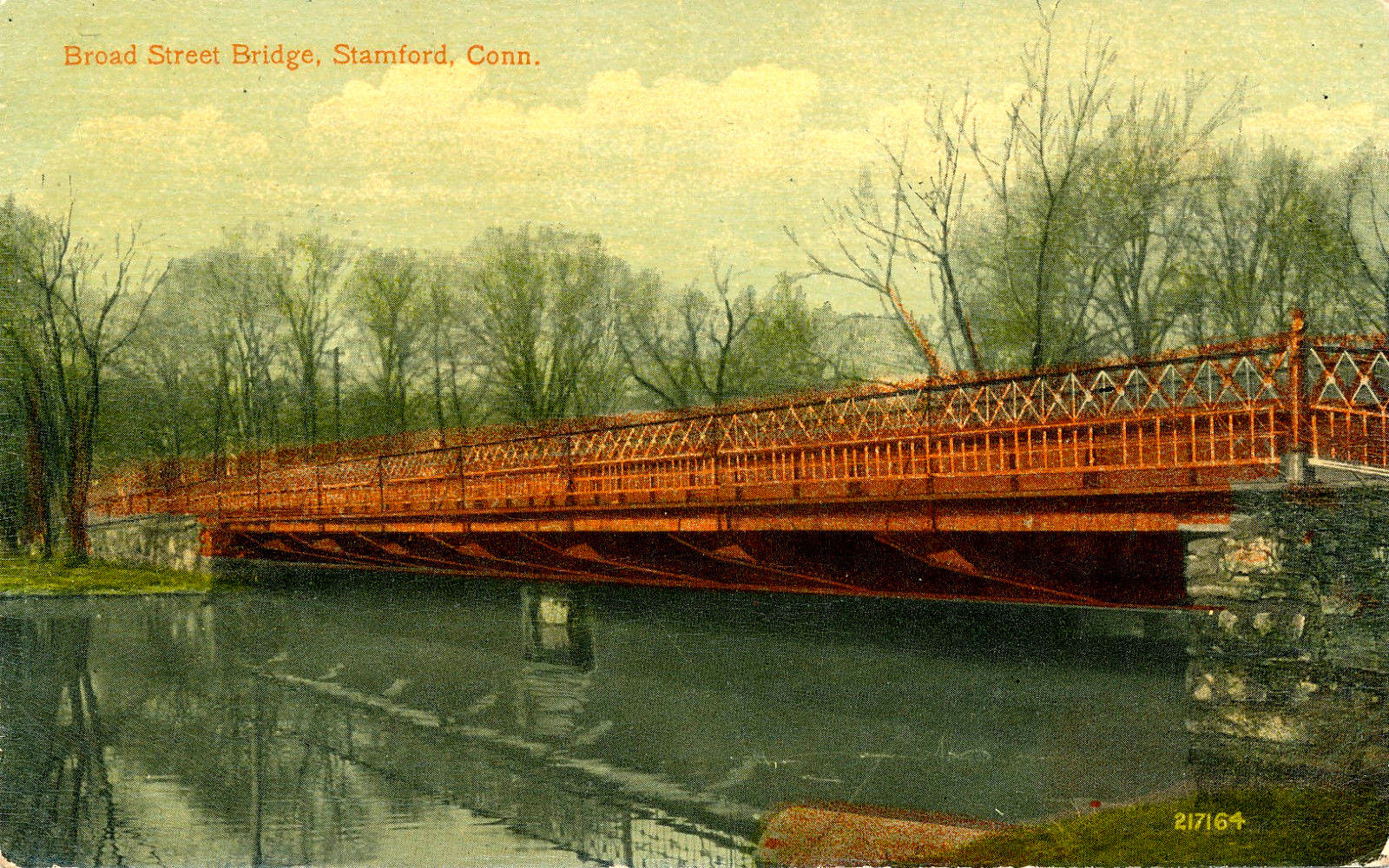 BROAD STREET BRIDGE, STAMFORD, CONN. CT. CONNECTICUT. RIVER & BRIDGE SCENE.