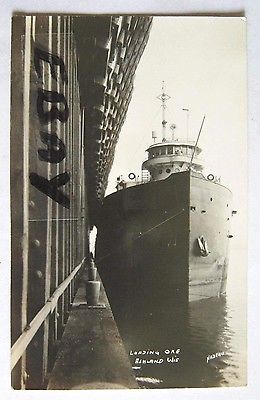 Title (ebay affiliate link): DOCK-BOAT-LAKE SUPERIOR, ORE SHIP BEING LOADED, ASHLAND, WI 30's-40's