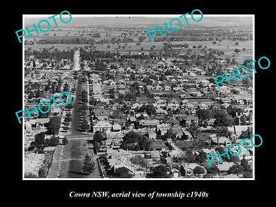 OLD LARGE HISTORIC PHOTO OF COWRA NSW, AERIAL VIEW OF TOWNSHIP c1940s