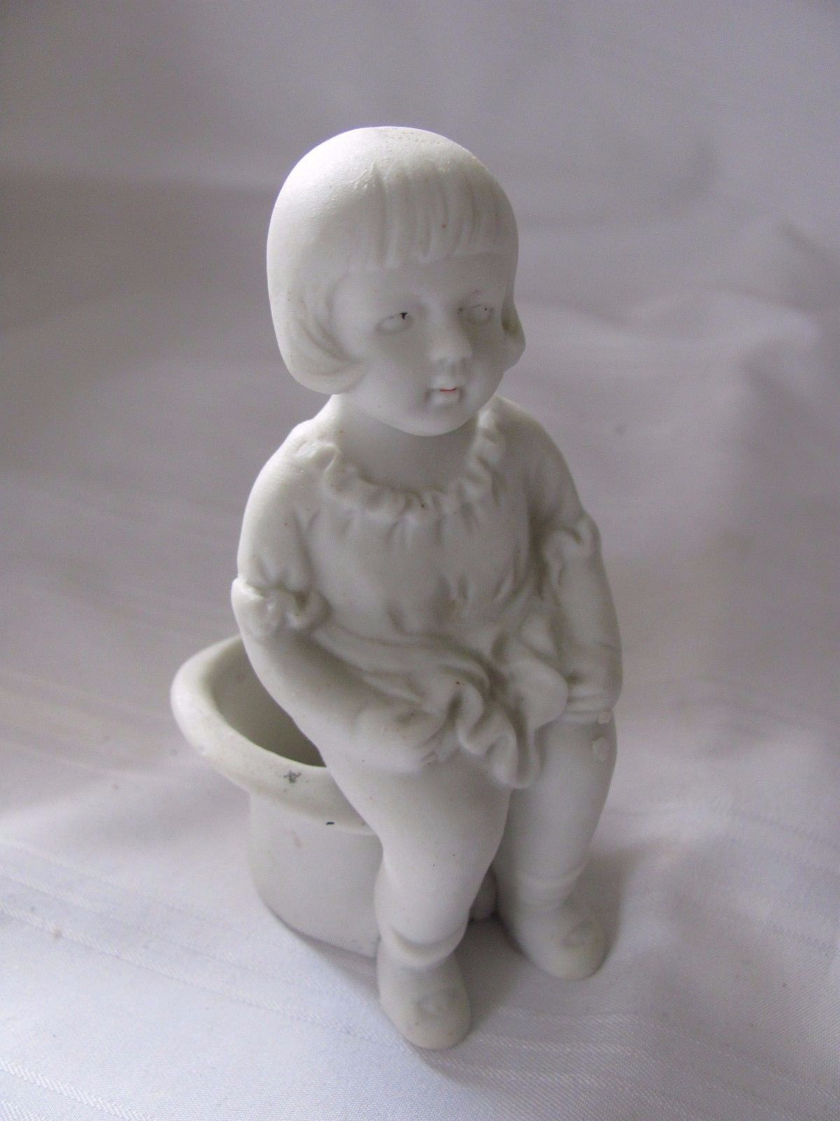Title (ebay affiliate link): White bisque girl figurine potty humor top hat Japan marked on back