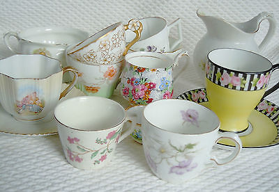 11-Vintage-Antique-Tea Cups/Saucers-Creamer/Pitcher-Limoges-England-France-MORE!