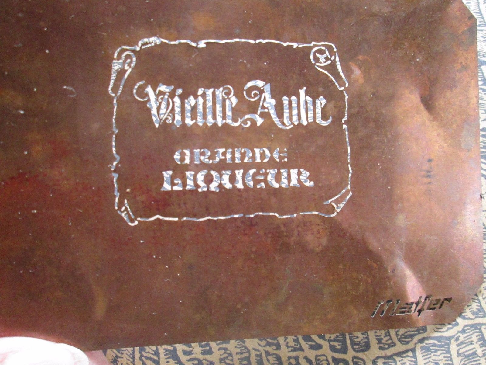 Antique brass stencil for liqueur"Vieille Aube Grande Liqueur/France