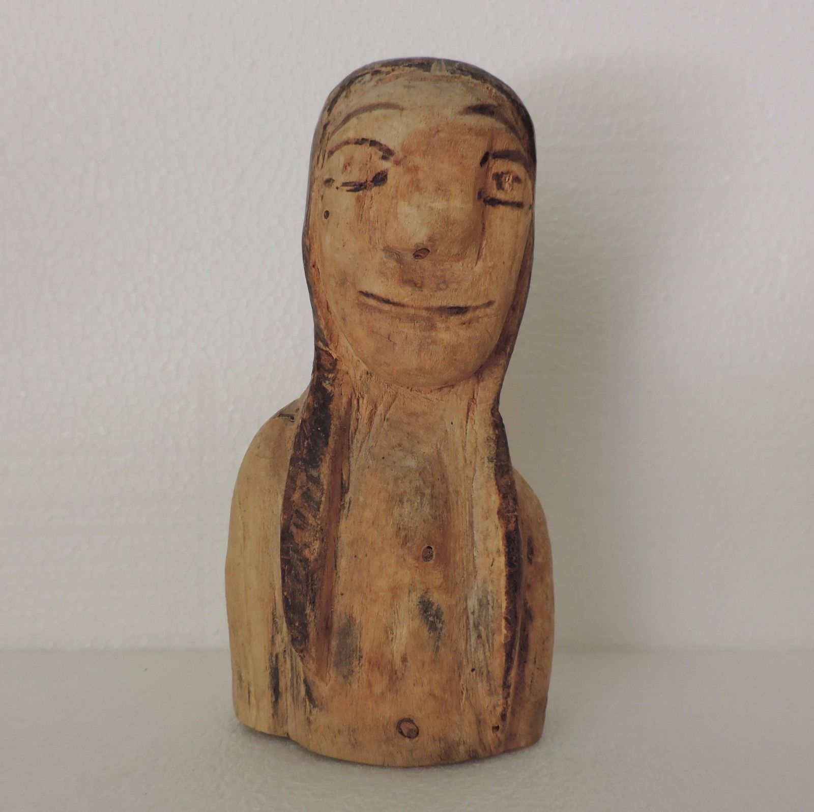 Antique Native American Hand Carved Wood Bust. Primitive Folk Art.