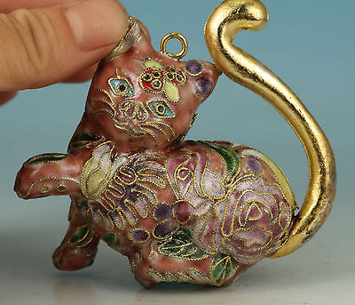 Title (ebay affiliate link): Chinese Old Cloisonne Handmade Carved Flower cat Statue Pendant Netsuke