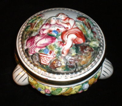 Title (ebay affiliate link): LOVELY,HAND PAINTED,FOOTED CAPODIMONTE LIDDED BOX,VINT