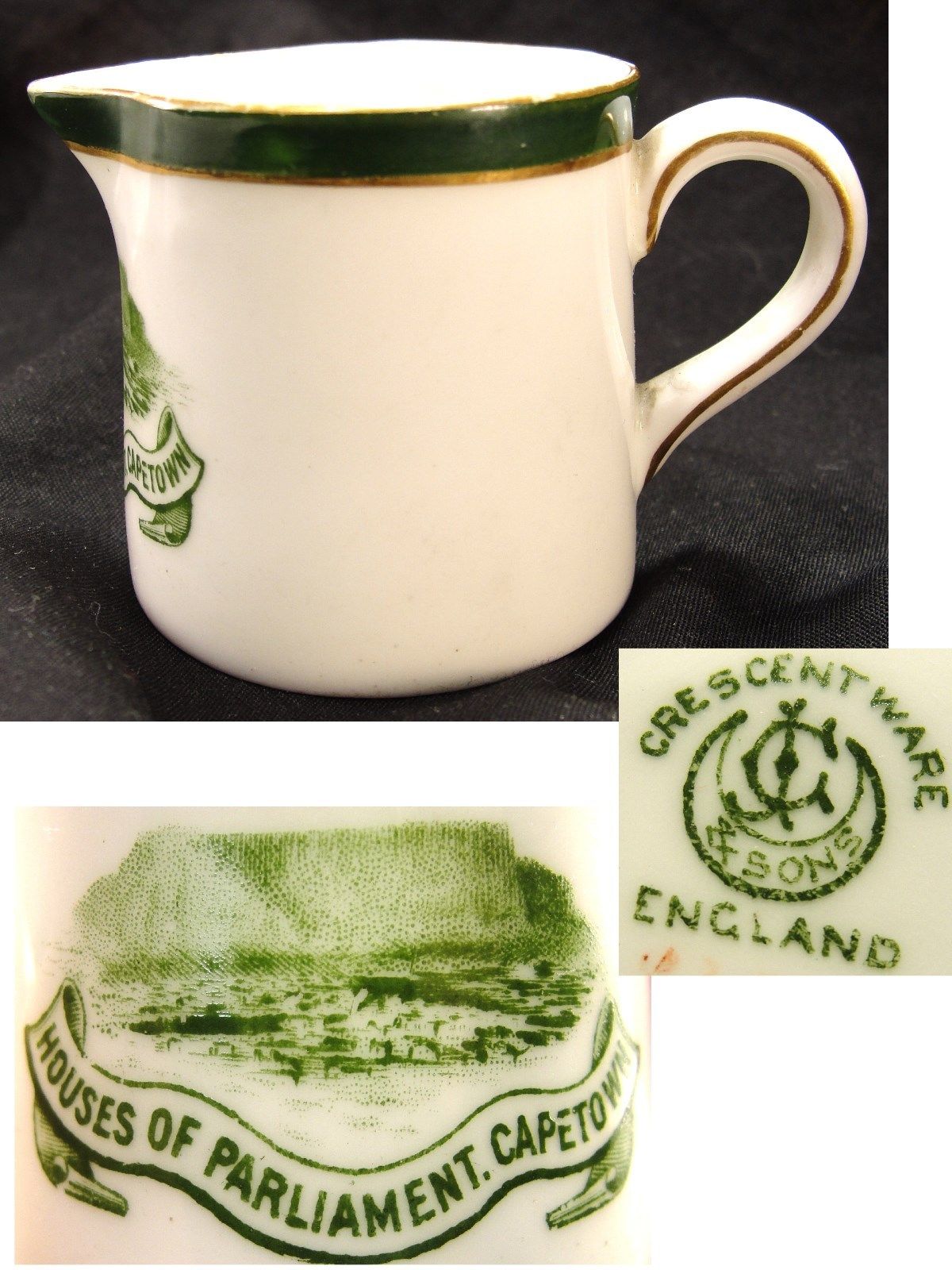 Title (ebay affiliate link): Antique George Jones Crescent Cape Town Houses of Parliament Creamer England