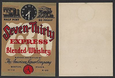 1/2 Pint Whiskey Label ~ "Seven-Thirty Express" 90 Proof ~ Made in Boston ~ 130