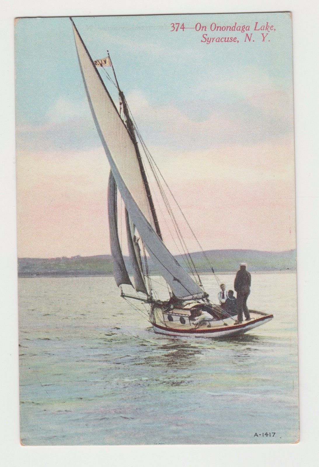 Title (ebay affiliate link): Sailboat "On Onondoga Lake, Syracuse, NY" - Vintage unposted postcard