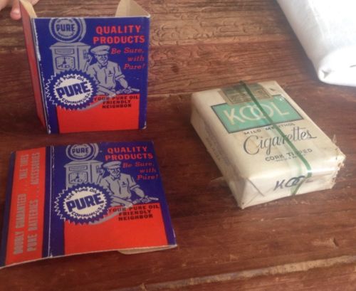 Title (ebay affiliate link): Vintage 1940s Pure Gas Adv. 2 "pack Jacs" & Unopened Kool Cig Pack Match Holders