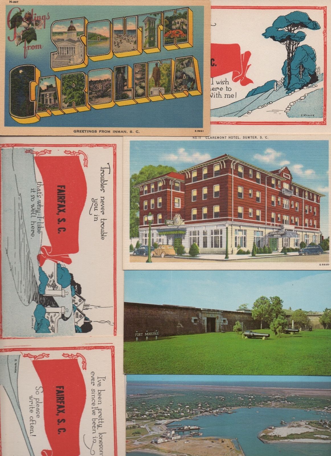 44~SOUTH CAROLINA SC POSTCARDS MIXED LOT~BUILDINGS~PENNANTS~MOTELS~RESTAURANTS+